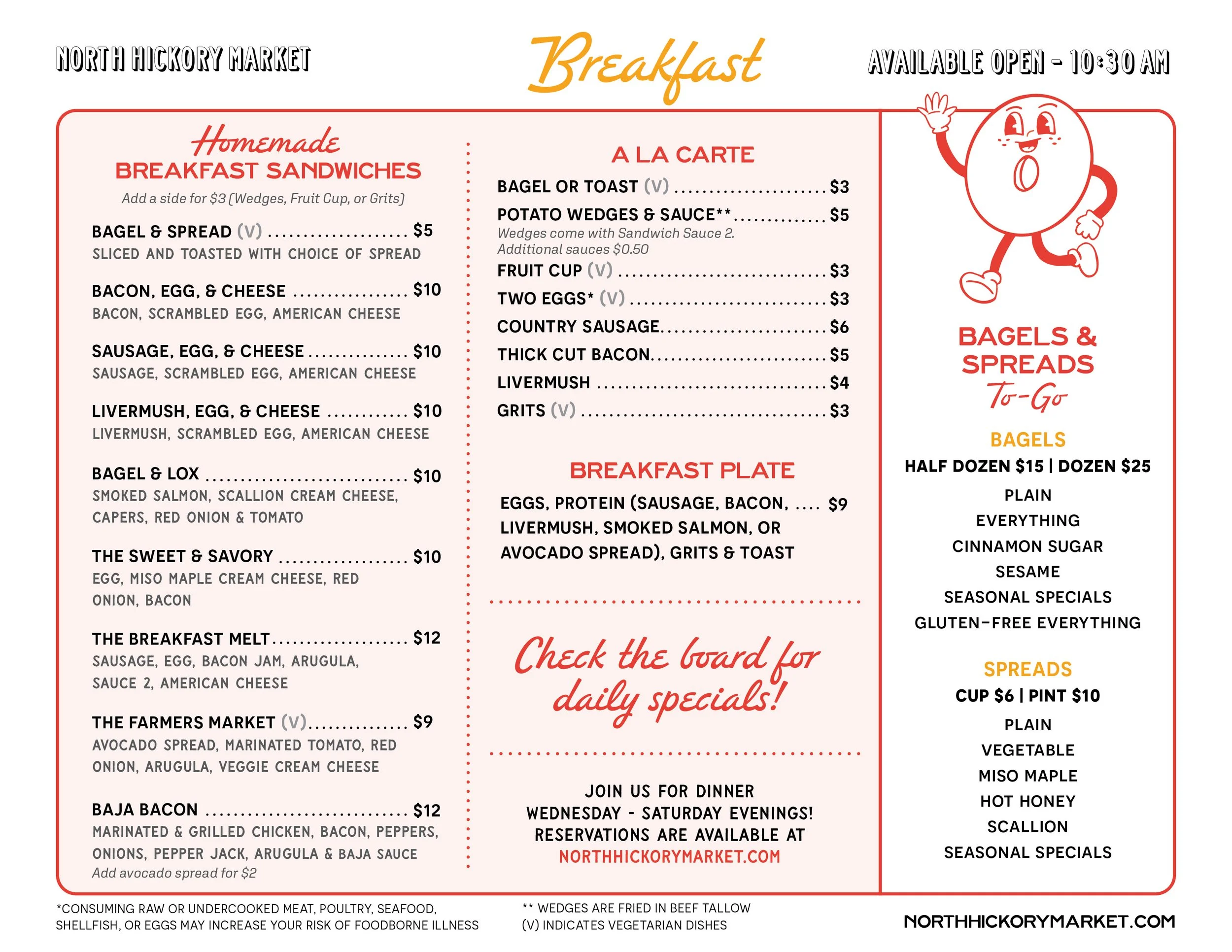 All menus are subject to change based on season and availability. Click to enlarge any of the menus. For dinner service, a 20% gratuity is automatically applied to tables of 6 or more.